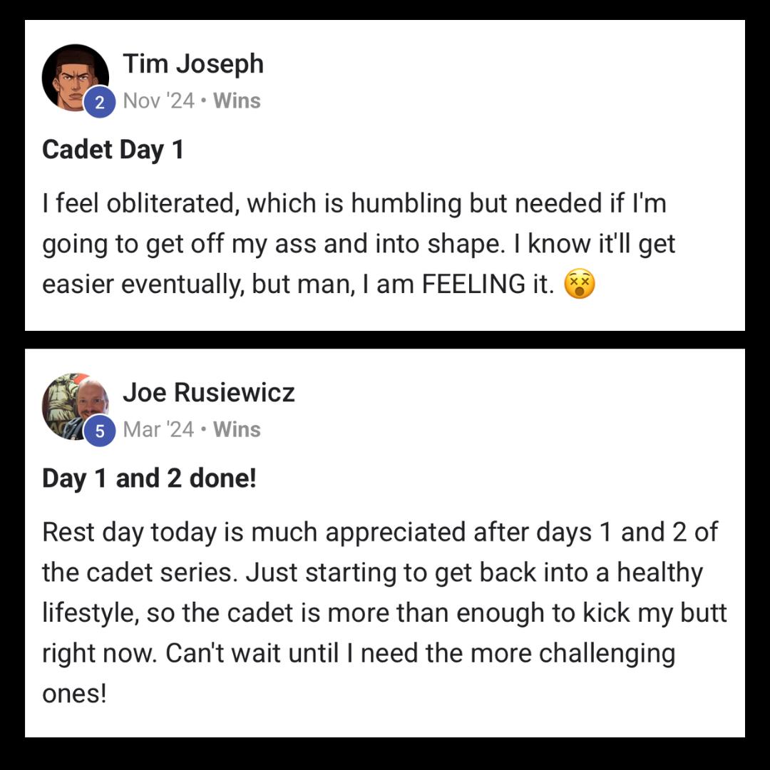 Get the Cadet Fitness Challenge, do the workouts, and if you hate it, just ask for a refund.