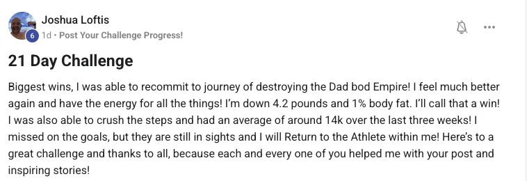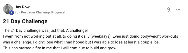 So after you set a baseline score, build momentum in weeks 2 and 3, and retest on day 21... you'll go from feeling overwhelmed with where to start to having a clear path to the body you dream of without having to spend 60+ minutes in the gym every day.