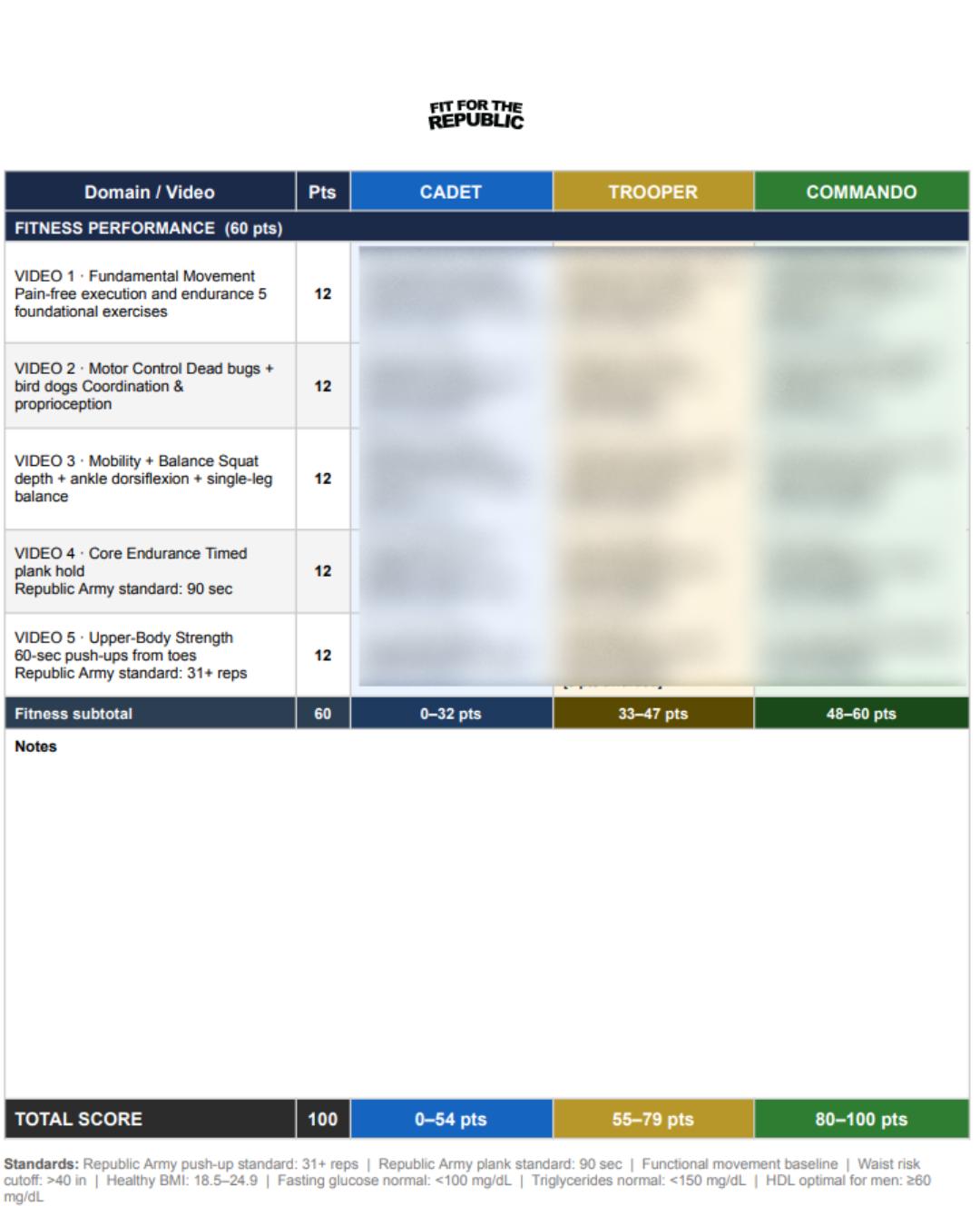 You'll fill out your CFT rubric once you complete it. This tells you where you rank as a cadet, trooper, or commando in that specific category.