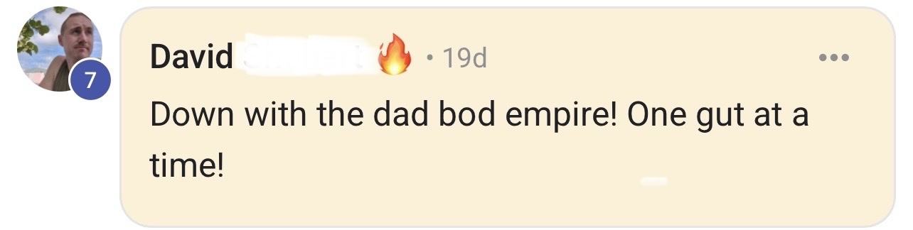 You're a relentless trooper who doesn't give up because he's on a mission to take down the Dad Bod Empire.