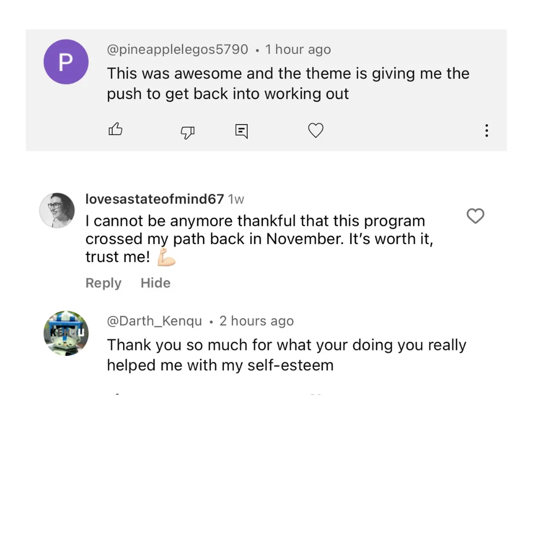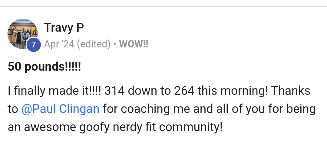 That's where we do the work to design your training plan to fit what you have access to. Many members have lost 20-80lbs just working out from home. Many use just bodyweight or dumbells. If your goals require certain equipment, we'll be honest with you. Nobody wins if we tell you something is achievable when it's not.